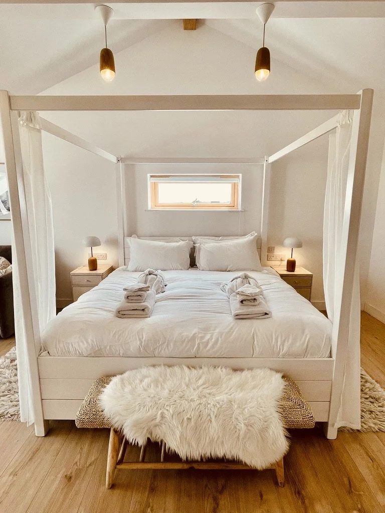 These rooms are unbeaten on size. Huge rooms, the full width of the building at each gable. Super king sized four poster bed and sofabed with a thick mattress makes this room perfect for families or guests who want a more luxurious space.